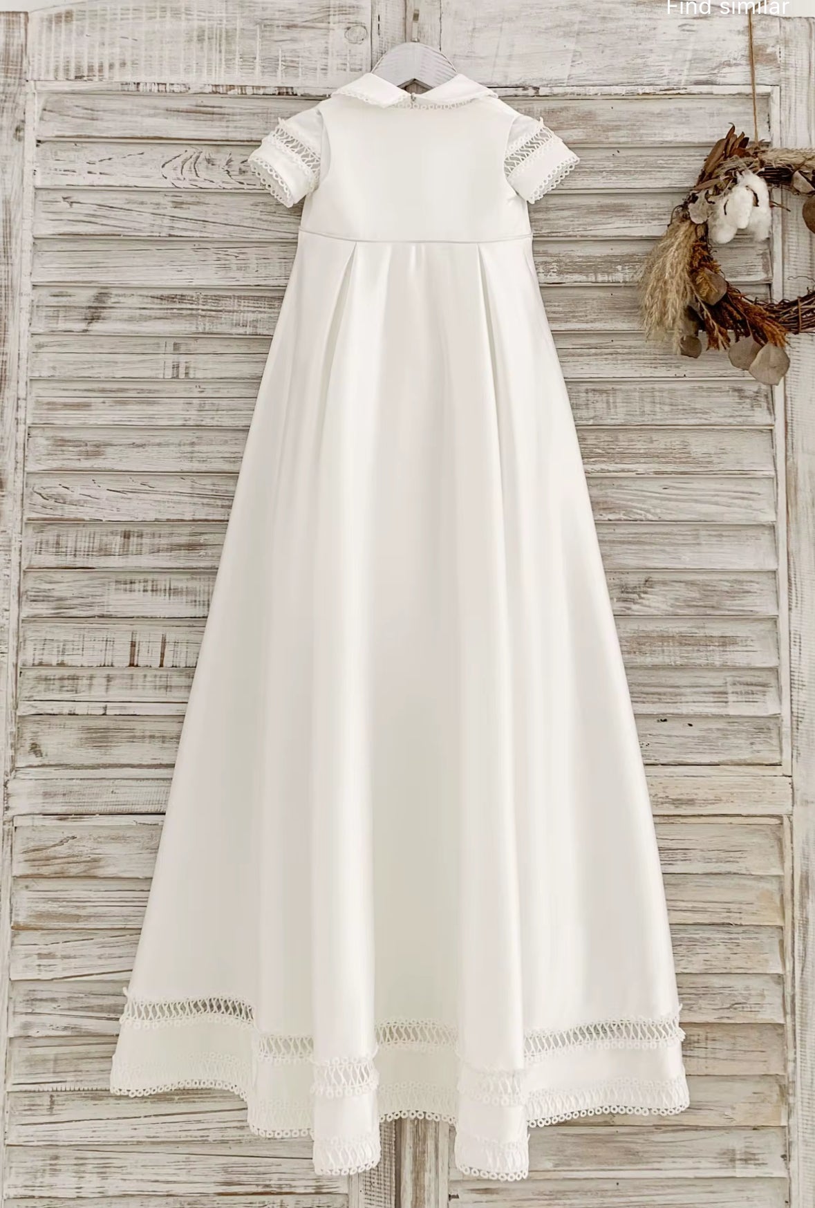 Our boys’ 4 -piece christening set is beautifully crafted in soft white fabric, featuring delicate lace detailing, a smart waistcoat overlay, and a matching bonnet and shoes for a traditional yet elegant finish. Designed with comfort and style in mind, it’s perfect for christenings, baptisms, and naming ceremonies.