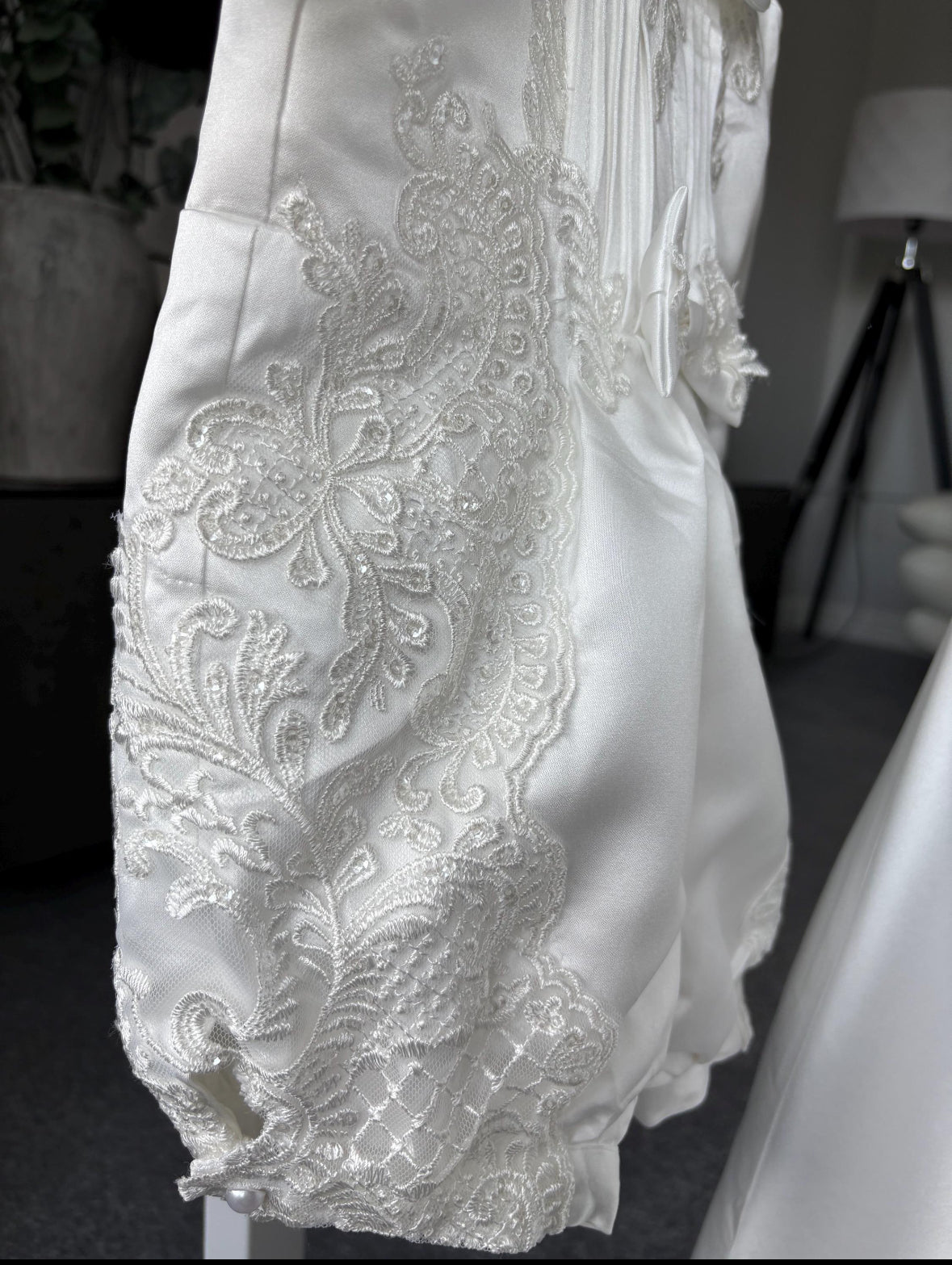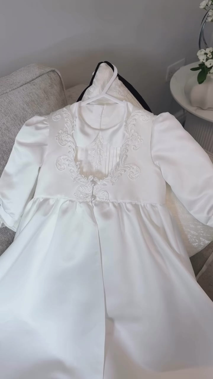 Gorgeous intricate detail making this a beautiful heirloom. The coat longer than the of romper so that its full beauty can be seen, giving the robe a very opulent feel. This is truly a very special garment for baby boys Christenings and naming ceremonies.